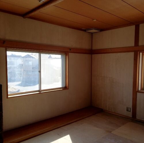 マスキング ばりばり はがして ぬりかべ かんりょう しましたよ むらが あるよに みえるのは かわいて いない ところです いやあ すっかり あかるく イメージ チェーンジ たたみは おもてがえ してるので ロールカーテンと しょうめいを それで なんとか い…